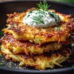 Crispy German Potato Pancakes, also known as Kartoffelpuffer, are a deliciously golden and savory treat made from grated potatoes and onions, mixed with eggs and flour, and fried to perfection. These pancakes are perfect as a side dish or a satisfying snack, offering a comforting taste of traditional German cuisine.