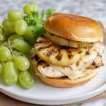 These Grilled Hawaiian Chicken Sandwiches bring together juicy, marinated chicken breast cutlets and sweet, caramelized pineapple for a perfect balance of savory and tropical flavors. Topped with melted provolone and a touch of mayo, they make a quick and delicious meal ready in under 15 minutes of grilling.