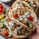 These Grilled Mediterranean Chicken Tacos offer a fresh twist on classic tacos by combining tender, lemon-oregano marinated chicken with vibrant Mediterranean flavors. Wrapped in soft pita bread and topped with a crisp veggie salsa and creamy tzatziki, they are perfect for an easy weeknight dinner or casual entertaining.