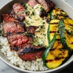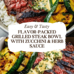 This Grilled Steak Bowl with Sauce & Grilled Zucchini is a flavorful and satisfying meal perfect for any weeknight dinner. Featuring tender steak, charred zucchini, and a creamy herb sauce, it combines simple ingredients for a deliciously balanced bowl.