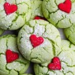 These Grinch Crinkle Cookies are a festive and fun treat perfect for holiday celebrations. With their bright green color and charming red heart topping, they capture the whimsy of the season in every bite. Plus, they come together quickly with just a few simple ingredients.