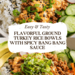 A quick and flavorful Ground Turkey Rice Bowl recipe served with a spicy and sweet Bang Bang Sauce. This dish combines tender ground turkey sautéed with aromatic spices and a delicious sauce, served over rice and fresh vegetables for a wholesome, satisfying meal that can be on your table in just 25 minutes.