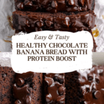 Keywords: Healthy chocolate banana bread, banana bread recipe, healthy baked goods, chocolate banana loaf, protein banana bread, oat flour banana bread, nut butter banana bread