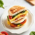 This healthy breakfast sandwich is a delicious way to start your day with protein and fresh veggies. It’s easy to make ahead and perfect for busy mornings when you need a quick, satisfying meal. The combination of eggs, spinach, tomatoes, and cheddar cheese on toasted English muffins creates a flavorful and nutritious sandwich.