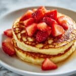 - Serve Warm with Fresh Strawberries: Stack the cooked pancakes on a plate, top generously with sliced fresh strawberries, and drizzle with honey or maple syrup if preferred. Serve immediately to enjoy the best taste and texture.