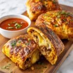 Store any leftovers in an airtight container in the refrigerator for up to 3 days. To reheat, warm gently in a preheated air fryer or oven until heated through and crispy. Avoid microwaving to maintain the calzone’s texture.