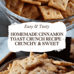 Homemade Cinnamon Toast Crunch is a light, crunchy cereal coated with a sweet cinnamon-sugar blend. It makes for a perfect breakfast or snack that’s not too heavy or overly sweet. Whether you love cinnamon or prefer it plain, this treat is sure to satisfy your cravings.