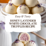 Keywords: Honey Lavender White Chocolate Truffles, white chocolate truffles, lavender truffles, homemade truffles, gourmet chocolates, no-bake truffles