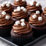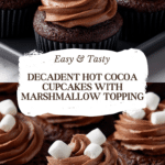These Hot Cocoa Cupcakes capture the cozy essence of a warm cup of cocoa in a delightful treat perfect for any occasion. Moist, chocolatey cupcakes are topped with a rich, creamy hot cocoa-flavored frosting and finished with a cute mini marshmallow for a comforting and festive dessert.