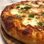 A deliciously unique Hot Honey Ricotta Pizza featuring a crispy golden crust topped with creamy ricotta blended with garlic, melty mozzarella and Parmesan cheeses, and a spicy drizzle of warm honey infused with red wine vinegar. Garnished with fresh basil, this pizza offers a perfect balance of sweet, savory, and spicy flavors in just 40 minutes.