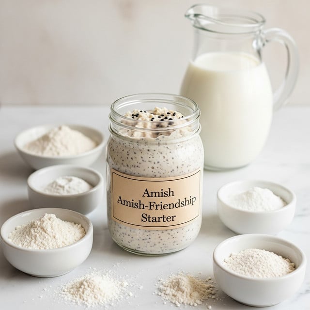 - Prepare the Starter: Feed your Amish starter with 1 cup each of all-purpose flour, milk, and sugar. Stir well and let it sit at room temperature for 24 hours until it becomes active and bubbly.