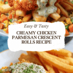 This Irresistible Chicken in Parmesan Cream Sauce recipe combines tender shredded chicken wrapped in buttery crescent roll pillows with a rich, creamy Parmesan sauce, perfect for elegant dinners or special occasions. The golden, breadcrumb-coated pillows are baked to perfection and served with a savory sauce that elevates the dish with classic Italian flavors.