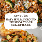 This Italian Ground Turkey & Veggie Skillet is a quick and flavorful one-pan meal featuring lean ground turkey seasoned with classic Italian herbs and spices, sautéed with fresh zucchini, bell peppers, and onions, then simmered in a rich tomato paste sauce. Perfect for a healthy and satisfying weeknight dinner, this dish combines protein and veggies in a hearty, aromatic skillet entrée.