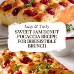 Jam Donut Focaccia is a delightful brunch treat combining airy, fluffy focaccia bread with a luscious jam filling, topped with a sweet glaze. This recipe delivers a unique twist on traditional focaccia, offering warm, gooey pockets of raspberry preserves baked into a soft, golden dough. Perfect for brunch gatherings, it’s customizable with your favorite jam flavors and can be prepared ahead of time for convenience.