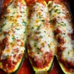 These Keto Chicken Parmesan Zucchini Boats are a delicious low-carb alternative to classic chicken parmesan. They combine juicy ground chicken, savory marinara, and melted cheese stuffed inside tender zucchini halves for a comforting dinner that’s quick and easy to prepare.