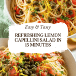 This refreshing Lemon Capellini Salad is a light and zesty pasta dish perfect for warm days or as a bright side to any meal. Featuring delicate capellini pasta tossed with fresh lemon juice, olive oil, garlic salt, diced tomatoes, capers, and fresh parsley, this salad is easy to prepare and bursting with citrus flavor. It’s a quick and satisfying recipe that pairs well with grilled dishes or can be enjoyed on its own.