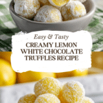 Keywords: Lemon truffles, white chocolate truffles, no-bake desserts, lemon white chocolate, homemade truffles, easy dessert, party treats