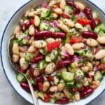 This vibrant Mediterranean Bean Salad is a refreshing and wholesome dish perfect for a light lunch or as a side at your next gathering. Featuring a colorful mix of garbanzo, cannellini, and kidney beans combined with fresh vegetables, herbs, olives, and a zesty lemon-garlic dressing, it offers a delicious blend of textures and flavors that are both nutritious and satisfying.