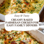 Keywords: baked chicken, creamy chicken, Parmesan chicken, easy family dinner, cheesy chicken breasts, comfort food
