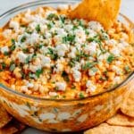 Keywords: Mexican street corn dip, elote dip, corn appetizer, party dip, cotija cheese dip