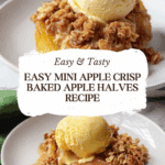 These Mini Apple Crisp Baked Apple Halves combine tender baked apples with a crunchy, buttery oat topping. They make a cozy dessert perfect for any time you crave something warm and comforting. Easy to prepare and delicious served with a scoop of ice cream.