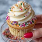 - Add Sprinkles: Lightly dunk the edges of the buttercream rosette into a bowl of your favorite sprinkles to add color and texture.