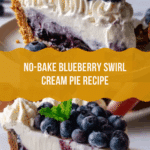 This no-bake blueberry swirl cream pie is a delightful and creamy dessert that’s perfect for warm days or any time you want a refreshing treat. It features a buttery graham cracker crust, a luscious white chocolate cream filling, and a vibrant blueberry swirl for a beautiful finish.