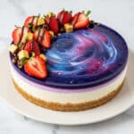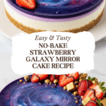 This No-Bake Strawberry Galaxy Mirror Cake is a stunning cosmic-inspired dessert featuring a creamy strawberry cheesecake base topped with a vibrant, shiny galaxy mirror glaze. Perfect for celebrations and sure to impress with its breathtaking look and luscious flavor, it requires no baking and is great for all skill levels.