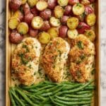 Keywords: Parmesan Crusted Chicken, Sheet Pan Dinner, One Pan Meal, Roasted Potatoes, Green Beans, Easy Dinners, Weeknight Meal
