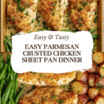 This Parmesan Crusted Chicken Sheet Pan Dinner is a delicious, all-in-one meal perfect for busy weeknights. Juicy chicken breasts coated with a crispy parmesan crust bake alongside golden potatoes and fresh green beans for an easy, flavorful dinner.