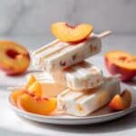 These Peaches ‘N Cream Popsicles are a refreshing and creamy treat perfect for summer. Made with fresh or frozen peaches, whole milk, powdered sugar, heavy whipping cream, and vanilla extract, they combine the natural sweetness of peaches with a rich, velvety texture. Lightly whipped cream is folded with the peach purée and milk before freezing, resulting in delightful popsicles that are easy to make and loved by kids and adults alike.