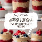 This Peanut Butter and Jelly Overnight Oats recipe is a delicious and nutritious make-ahead breakfast that combines the creamy richness of peanut butter with the sweet, fruity flavor of chia seed jam. Perfect for busy mornings, these oats are soaked overnight to achieve a creamy, satisfying texture without any cooking required. With Greek yogurt and chia seeds adding protein and fiber, this recipe is a wholesome start to your day.