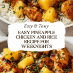 The tangy sweetness of pineapple paired with tender chicken is a comforting combination that’s both flavorful and easy to make. This Pineapple Chicken and Rice recipe is a one-pan wonder, perfect for busy weeknights when you want a delicious meal without the fuss. Enjoy the vibrant mix of sweet and savory flavors with minimal cleanup.