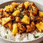 Keywords: pineapple chicken, chicken and rice, sweet and savory chicken, one-pan dinner, quick chicken recipe, tropical chicken recipe, easy weeknight dinner