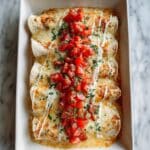 Queso chicken enchiladas are a comforting and cheesy dish featuring tender shredded chicken wrapped in corn tortillas and smothered in a creamy homemade queso sauce. Baked until bubbly and golden, this flavorful Mexican-American favorite comes together in just 45 minutes, perfect for a satisfying weeknight dinner.