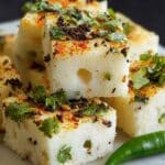 Rava Dhokla is a light and fluffy steamed snack from India, made with semolina and yogurt. It’s a quick and healthy treat that’s perfect for breakfast or tea time. This recipe guides you through making soft, spongy dhoklas with a hint of spice and tempering aroma.