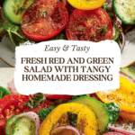 This vibrant red and green salad is a fresh, colorful mix perfect for a light lunch or as a side dish. Packed with crisp vegetables and a tangy homemade dressing, it’s both simple and satisfying.