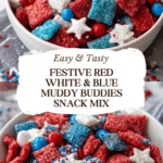 Red, White, and Blue Muddy Buddies are a festive and fun snack perfect for celebrations or anytime you want a sweet, crunchy treat. This colorful twist on the classic puppy chow combines patriotic colors with the irresistible crunch of Chex cereal and the sweetness of candy melts. It’s quick to make and sure to impress.