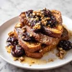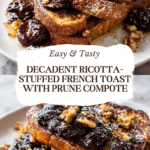 This decadent Ricotta-Stuffed French Toast with Prune Compote recipe is a perfect blend of creamy ricotta filling and a rich, fruity prune compote, served on golden brown sourdough slices. Ideal for a special breakfast or brunch, this dish combines sweet and tangy flavors with a hint of warm spices and a delightful crunch from toasted walnuts.