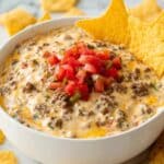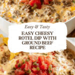 Keywords: Rotel dip, cheesy dip, ground beef dip, party appetizer, easy dip recipe, Velveeta dip, Tex-Mex dip