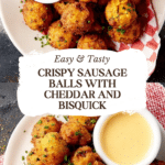Keywords: bisquick, breakfast sausage, crispy, sausage balls, party appetizer, cheese balls, baked appetizer