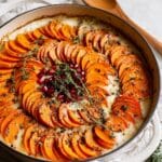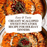 Keywords: scalloped sweet potatoes, creamy sweet potato recipe, cheesy sweet potato side dish, holiday side dish, baked sweet potatoes