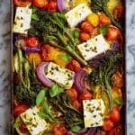 This vibrant sheet-pan baked feta recipe features tender broccolini, blistered grape tomatoes, and tangy lemon slices, all roasted together with flavorful spices and olive oil. The feta cheese melts slightly, adding creamy saltiness that pairs perfectly with the fresh herbs and a bed of orzo or farro. A simple, healthy, and elegant one-pan meal that’s easy to prepare and bursts with Mediterranean flavors.