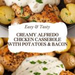 This Smothered Alfredo Chicken Casserole is a comforting blend of tender chicken, creamy Alfredo sauce, and hearty Yukon potatoes. With broccoli and crispy bacon added for extra flavor and texture, it’s a cheesy, satisfying meal perfect for family dinners.