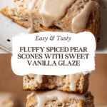 Keywords: spiced pear scones, vanilla glaze scones, pear recipes, fall baking, cinnamon scones, breakfast pastries