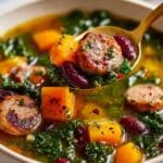 Keywords: turkey sausage soup, kale soup, sweet potato soup, healthy soup, one-pot meal, weeknight dinner, lean protein soup
