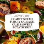 This Spiced Turkey Sausage Kale Sweet Potato Soup blends hearty and healthy ingredients for a comforting meal. With savory turkey sausage, tender sweet potatoes, and nutrient-rich kale, this soup is quick to make and full of flavor. It’s perfect for busy weeknights or meal prep.