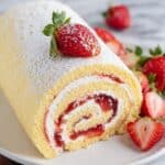 - Final chill and serve: Cover the cake roll with plastic wrap and refrigerate for 1 to 2 hours to set. Before serving, dust with powdered sugar, garnish with fresh strawberries, slice, and enjoy.