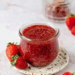This strawberry chia jam is a delicious and healthy alternative to store-bought jams. Made with fresh strawberries and chia seeds, it offers natural sweetness and a boost of fiber in just 20 minutes.