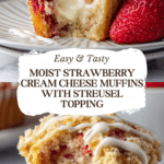 Keywords: strawberry muffins, cream cheese muffins, streusel topping, breakfast muffins, easy muffin recipe, homemade muffins, cream cheese filling, fruit muffins